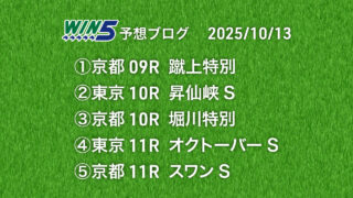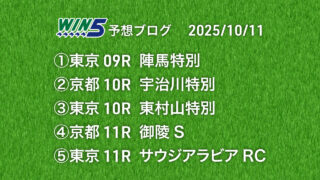 WIN5 WIN5予想 2025/10/05 京都大賞典・毎日王冠 土曜日はまさかの的中0票で俄然盛り上がりそうな今日のWIN5。オッズに惑わされないように前半3Rは前日夜のうちに、そして東西重賞は朝まで慎重に検討しております。三連複は妙味ありそうな京都大賞典を多めに勝負、少し毎日王冠にもチャレンジします。... 2025.10.05 WIN5