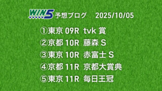 WIN5 WIN5予想 2025/10/05 京都大賞典・毎日王冠 土曜日はまさかの的中0票で俄然盛り上がりそうな今日のWIN5。オッズに惑わされないように前半3Rは前日夜のうちに、そして東西重賞は朝まで慎重に検討しております。三連複は妙味ありそうな京都大賞典を多めに勝負、少し毎日王冠にもチャレンジします。... 2025.10.05 WIN5
