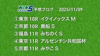 WIN5 WIN5予想 2025/11/09 アルゼンチン共和国杯 京王杯2歳Sは圧勝のダイヤモンドノット以外は全くの見当違いで惨敗。今日も難しそうですがアルゼンチン共和国杯で波乱を期待します。 ①東京10R イクイノックスM(芝2000m)14:55発走 2点勝負 ◎⑫ウィクトルウェルス 1人気1着◯⑪モ... 2025.11.09 WIN5
