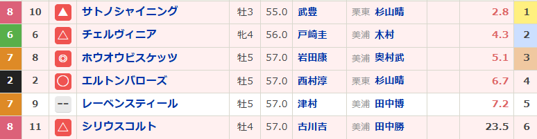上位人気の中で避けるように無印にしていたレーベンスティールが1着・・・。この馬とは相性が悪いです。