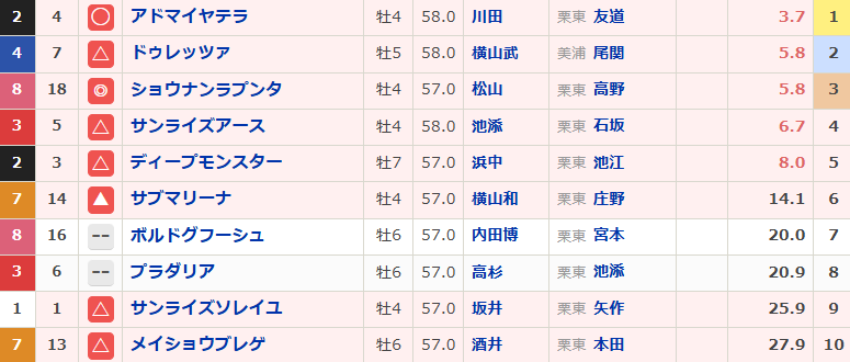 ▲⑭サブマリーナ 6人気16着
