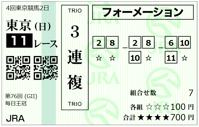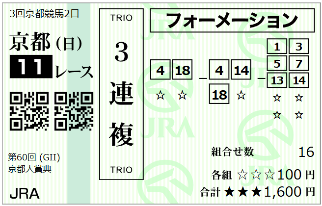 三連複は妙味ありそうな京都大賞典を多めに勝負、少し毎日王冠にもチャレンジします。
