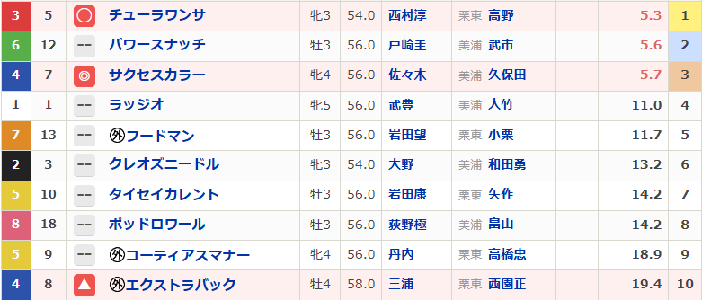 ◯②エルトンバローズ 4人気5着