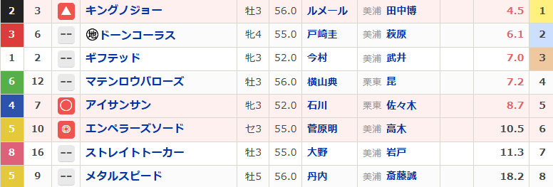 (オッズは前日23時現在、アイルランドTは当日10時現在)