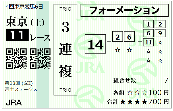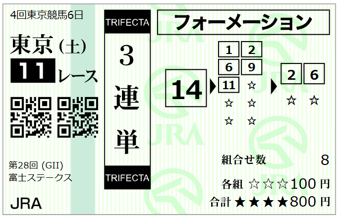 ⑤東京11R 富士S(GⅢ・芝1600m)15:45発走 1点勝負&三連複・三連単