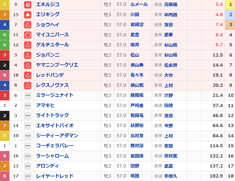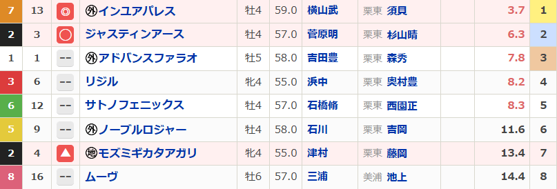 悩んだ末、今週もペリエ・武で決まるという結末を想像しています。道悪を苦にせず差し遅れがなければ神戸新聞杯快勝のエリキングにもチャンス。