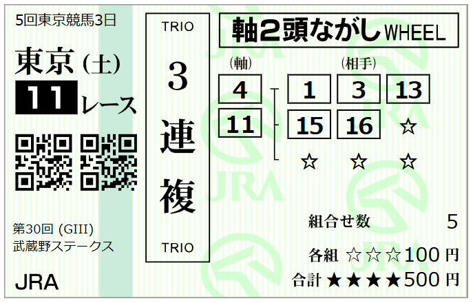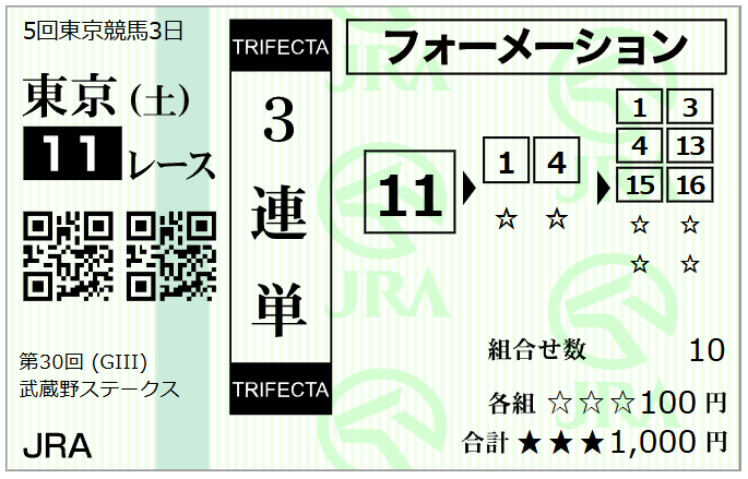 ④東京11R 武蔵野S(GⅢ・ダ1600m)15:35発走 1点勝負&三連単・三連複