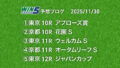 間隔を空けて大事に使われてきたグランヴィノスがここで開花。大阪城S圧勝の実績もあるデビットバローズや、前走チャレンジCは鞍上のファインプレーが光るも本格化の兆しがあるオールナットも強敵。